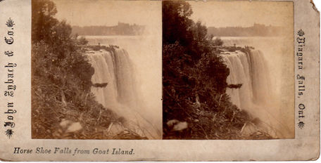The impressive view of the Niagara Falls has long fascinated people from all over the world. Different companies like John Zynbach & Co. and Geo Barker, created these five stereographs showing powerful scenes of the falls.